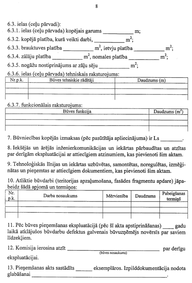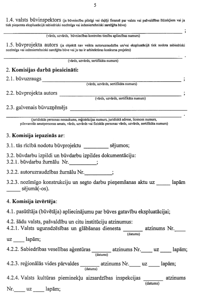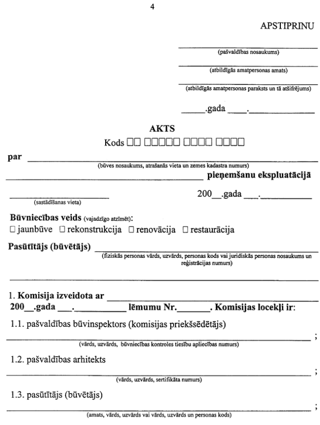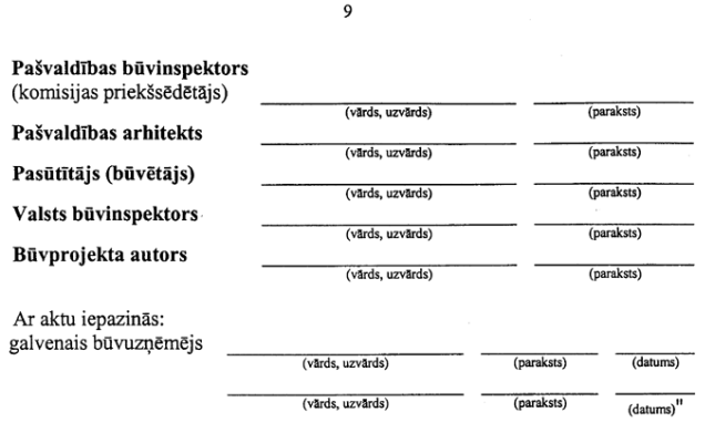 "8. Būvi pieņem ekspluatācijā vietējās pašvaldības domes (padomes) izveidota pieņemšanas komisija (turpmāk — komisija). Komisijas sastāvā ir vietējās pašvaldības domes (padomes) apstiprinātas amatpersonas un šo noteikumu 9.punktā minētie komisijas locekļi."