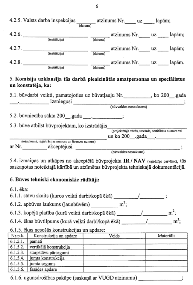 "6. Noteikumu 5.1., 5.2., 5.5. un 5.7.apakšpunktā minēto dokumentu kopijas pasūtītājs nodod glabāšanā būvvaldes arhīvā."