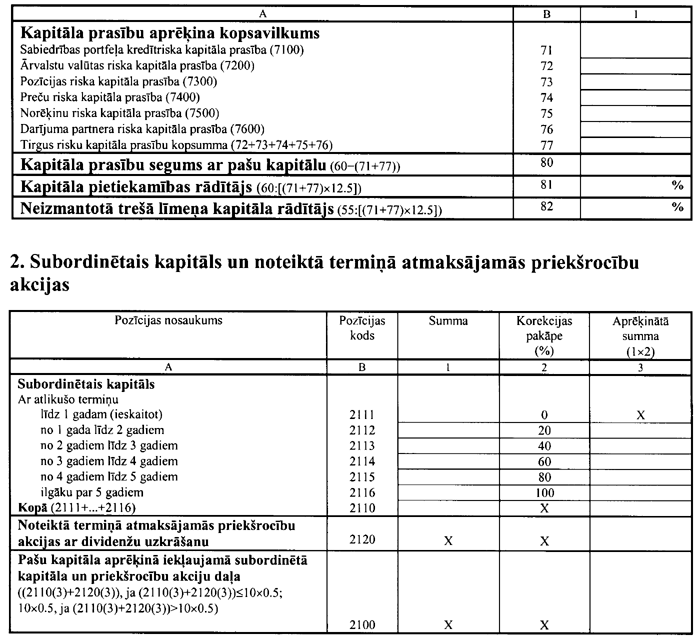 1.2. Noteikumi nosaka Kredītiestāžu likuma 35. un 49. pantā noteikto banku darbību regulējošo prasību, Finanšu instrumentu tirgus likuma 121. panta pirmajā un otrajā daļā noteikto ieguldījumu brokeru sabiedrību darbību regulējošo prasību un Ieguldījumu pārvaldes sabiedrību likuma 8. pantā noteikto ieguldījumu pārvaldes sabiedrību darbību regulējošo prasību aprēķināšanas, kā arī attiecīgo pārskatu iesniegšanas kārtību.