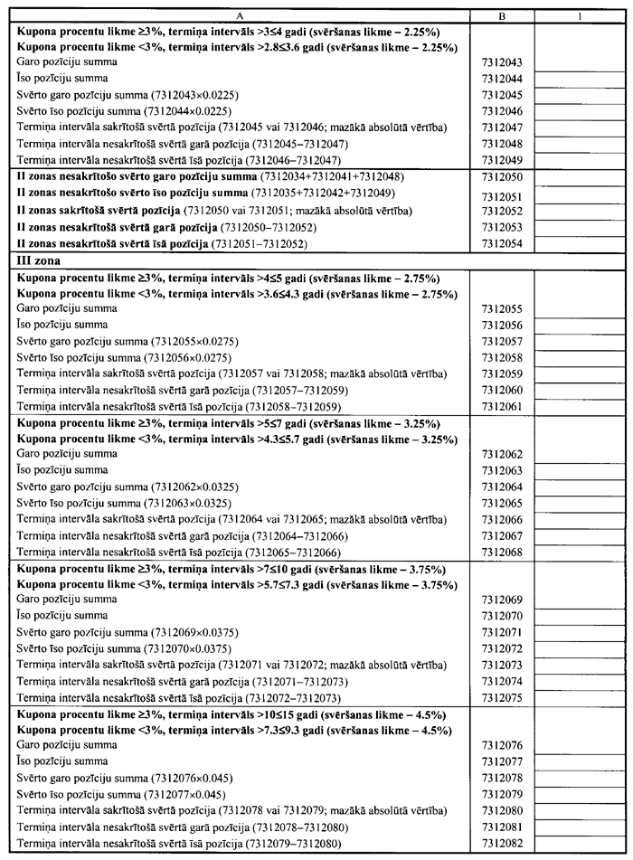 3.10. Novērtējot bilances un ārpusbilances posteņu kopsummu, lai aprēķinātu 3.9.1. punktā minēto tirdzniecības portfeļa apmēra attiecību pret bilances un ārpusbilances posteņu kopsummu, sabiedrības portfelī un tirdzniecības portfelī iekļautos parāda vērtspapīrus vērtē pēc to tirgus cenas un atvasinātos instrumentus — pēc bāzes aktīva nominālvērtības vai tirgus vērtības. Ja informācija par sabiedrības portfeļa parāda vērtspapīru tirgus cenu nav viegli pieejama, var izmantot šo sabiedrības portfeļa parāda vērtspapīru bilances vērtību. Garās pozīcijas un īsās pozīcijas summē, saskaitot to absolūtās vērtības.