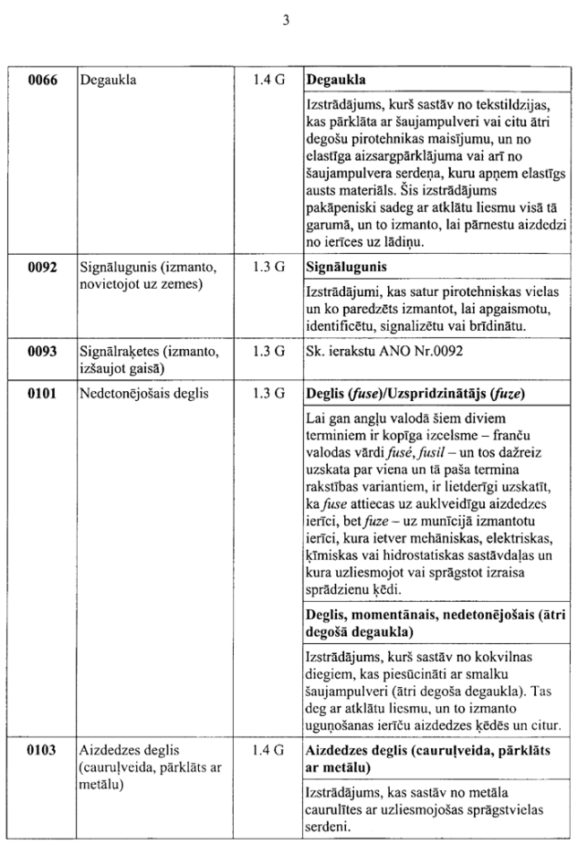 3) Komisijas 2004.gada 23.aprīļa Direktīvas 2004/57/EK par pirotehnikas izstrādājumu un konkrētas munīcijas identifikāciju saistībā ar Padomes Direktīvu 93/15/EEK par noteikumu saskaņošanu attiecībā uz civilām vajadzībām paredzēto sprāgstvielu laišanu tirgū un pārraudzību."