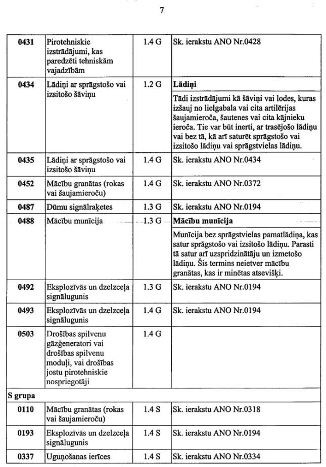 "7.1 Pirotehnisko izstrādājumu un munīcijas identifikācija pēc to pazīmēm atšķirībā no sprāgstvielām un spridzināšanas ietaisēm