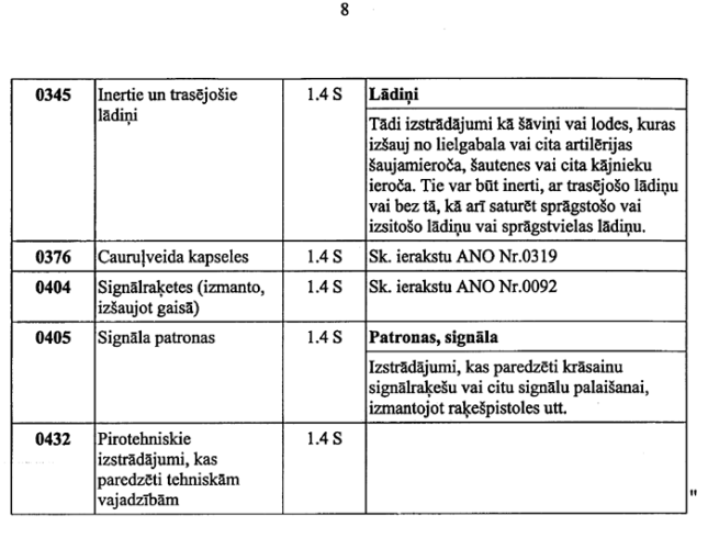 532.1 Veicot komercdarbību sprāgstvielu, spridzināšanas ietaišu, munīcijas vai pirotehnisko izstrādājumu aprites jomā un nosakot, vai attiecīgais izstrādājums ir sprāgstviela, spridzināšanas ietaise, pirotehniskais izstrādājums vai munīcija, ir jāņem vērā Apvienoto Nāciju Organizācijas ieteikumi par izstrādājumiem, kuri tiek uzskatīti par pirotehnikas izstrādājumiem vai munīciju (12.pielikums), un izstrādājumiem, attiecībā uz kuriem jānosaka, vai tie ir pirotehnikas izstrādājumi vai sprāgstvielas (13.pielikums)."