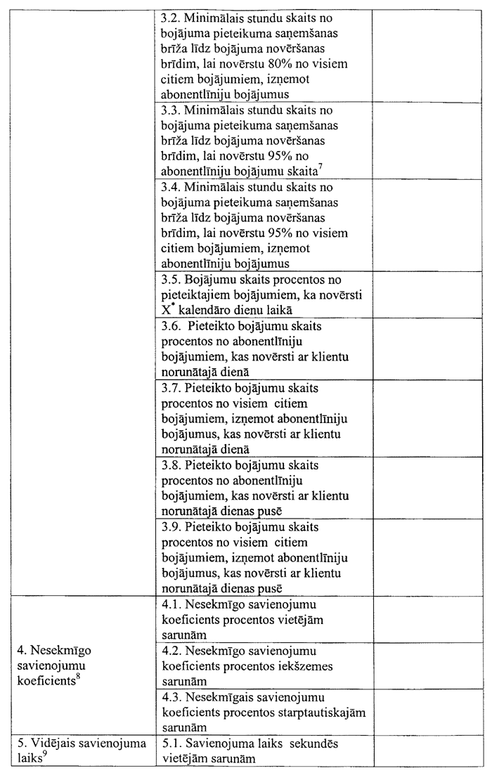3 Bojājumu skaita uzskaiti nodrošina, ja balss telefonijas pakalpojumu sniedz izmantojot abonenetlīnijas (tajā skaitā atsaistītas abonentlīnijas).