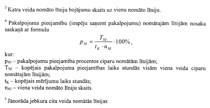 4 Pakalpojuma pieejamību (iespēju saņemt pakalpojumu) nomātajām līnijām nosaka saskaņā ar formulu