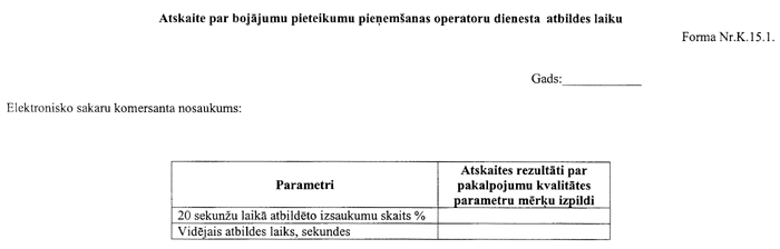 1. Bojājumu pieteikumu pieņemšanas operatoru dienesta atbildes laiks |