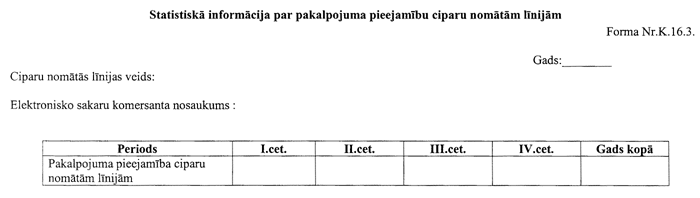 1Abonentlīniju uzskaiti jāattiecina uz publiskā fiksētā telefonu tīkla pieslēguma punktu (turpmāk — pieslēguma punkts) skaitu (tajā skaitā sapārotās, blīvētās abonentlīnijas, ISDN 30, PABX pieslēgumi ar R2-CAS un citi). ISDN BRA uzskaita kā vienu abonentlīniju.