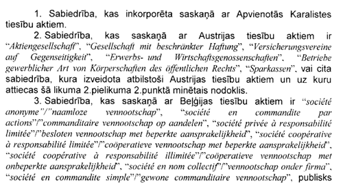 Eiropas Savienības dalībvalstu sabiedrības, uz kurām attiecināma šā likuma 1.panta deviņpadsmitā daļa, un šo sabiedrību veidam atbilstošā termina oriģinālforma dalībvalstu tiesību aktos
