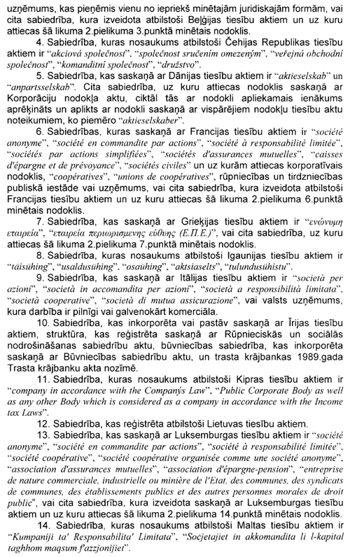 papildināt trešo daļu pēc vārdiem “iekšzemes uzņēmums” ar vārdiem “vai uzņēmums, kurš ir tāds citas Eiropas Savienības dalībvalsts rezidents, kas, pamatojoties uz spēkā esošo konvenciju par nodokļu dubultās uzlikšanas novēršanu, netiek atzīts arī par citas valsts (kas nav Eiropas Savienības dalībvalsts) rezidentu”.