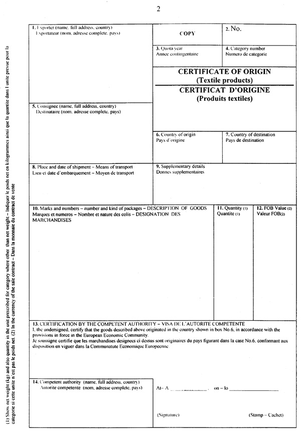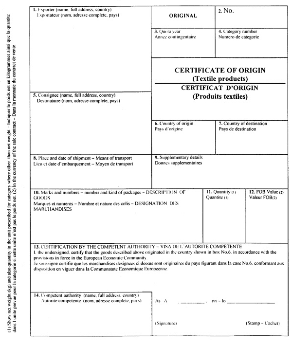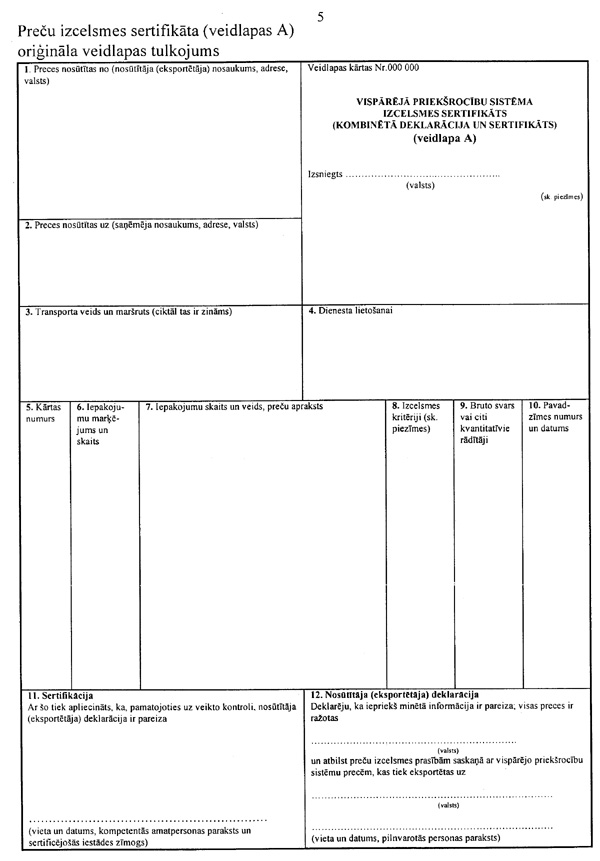 10. Preču izcelsmes sertifikāta (tekstilizstrādājumiem) iesniegums un vispārējās priekšrocību sistēmas preču izcelsmes sertifikāta (veidlapas A) iesniegums ir latviešu valodā. Preču izcelsmes sertifikāta (tekstilizstrādājumiem) oriģināls ir angļu un franču valodā. Vispārējās priekšrocību sistēmas preču izcelsmes sertifikāta (veidlapas A) oriģināls ir angļu vai franču valodā.