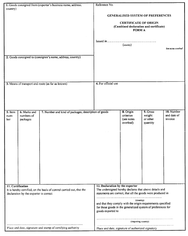 11. Nepreferenciālā preču izcelsmes sertifikāta, preču izcelsmes sertifikāta (tekstilizstrādājumiem) un vispārējās priekšrocību sistēmas preču izcelsmes sertifikāta (veidlapas A) veidlapu iespiešanu organizē Latvijas Tirdzniecības un rūpniecības kamera. Uz katras preču izcelsmes sertifikāta veidlapas norāda iespiedēja nosaukumu un adresi vai atzīmi, pēc kuras var noteikt iespiedēju.