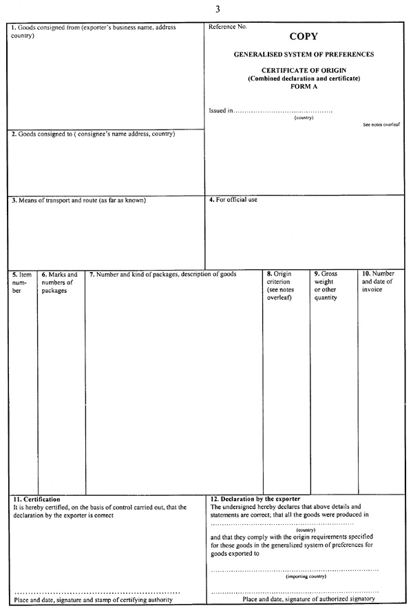 12. Uz katra nepreferenciālā preču izcelsmes sertifikāta un vispārējās priekšrocību sistēmas preču izcelsmes sertifikāta (veidlapas A) norāda sērijas numuru, pēc kura to var identificēt. Uz iesnieguma preču izcelsmes sertifikāta saņemšanai un uz visām sertifikāta kopijām jābūt vienam sērijas numuram. Izsniedzējiestāde šos sertifikātus var papildus numurēt to izsniegšanas kārtībā.
