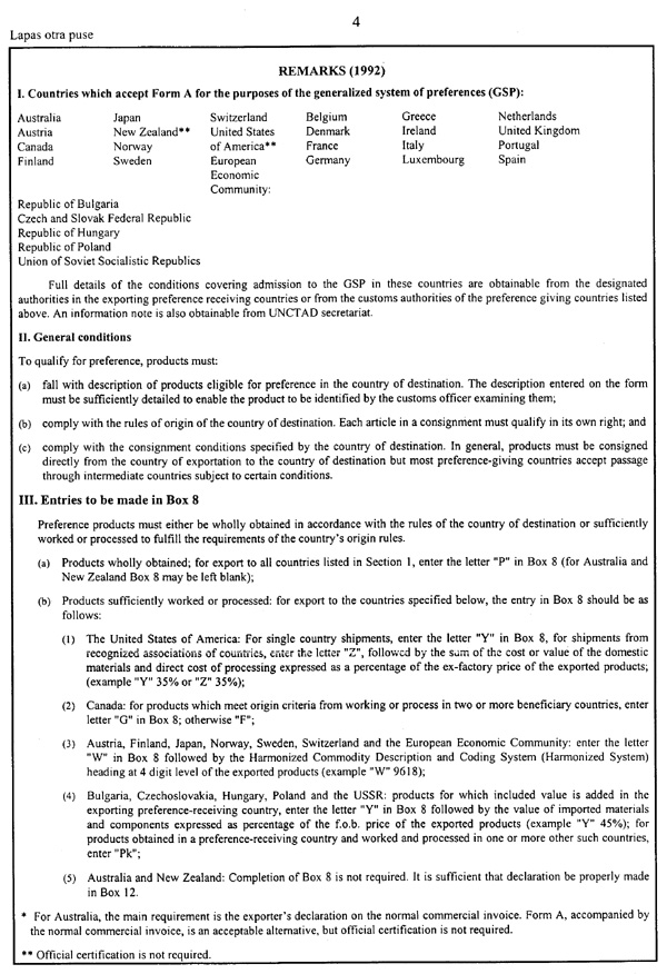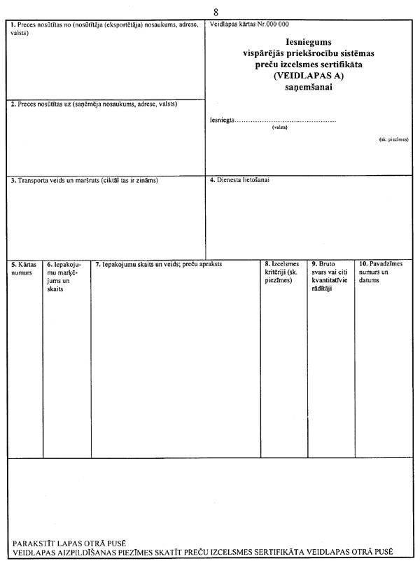 Vispārējās priekšrocību sistēmas preču izcelsmes sertifikāta veidlapa un iesniegums sertifikāta saņemšanai