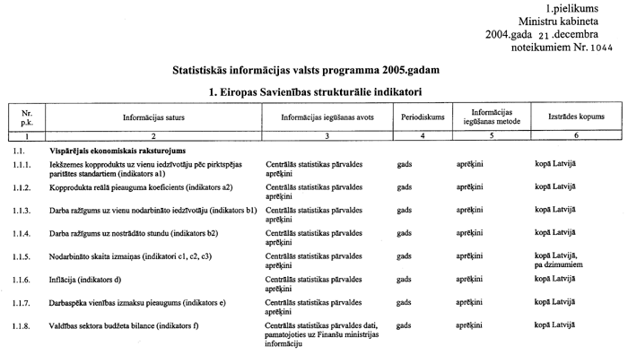 1. Noteikumi apstiprina Statistiskās informācijas valsts programmu 2005.gadam (1.pielikums).
