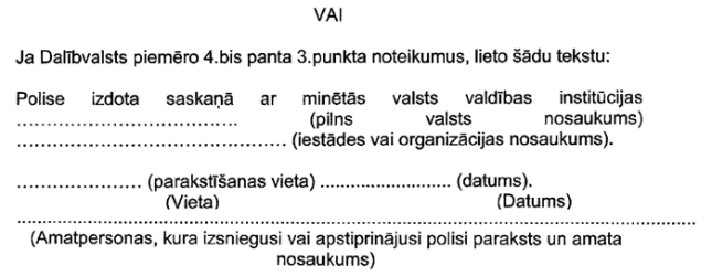 1. Norādot valsti, pēc vēlēšanās var norādīt kompetento valsts iestādi, kas izsniegusi polisi.