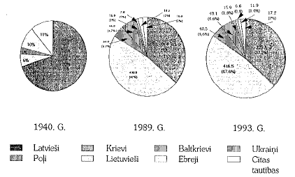 Visdramatiskāk mainījies Rīgas iedzīvotāju etniskais sastāvs — no 70 procentiem latviešu (kā pamatnācijas) 1940.gadā līdz 37 procentiem 1994.gadā. Un bēdīgākais, ka, pēc demogrāfu prognozēm, latviešu īpatsvars Rīgā arī 2000.gadā vēl nesasniegs 40 procentus no iedzīvotāju kopskaita.