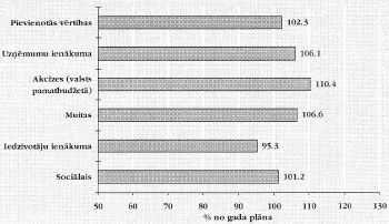 Kā redzams 16.attēlā, visu nodokļu ieņēmumu, izņemot iedzīvotāju ienākuma nodokļa ieņēmumu, 1996.gada noteiktais plāns tika izpildīts.